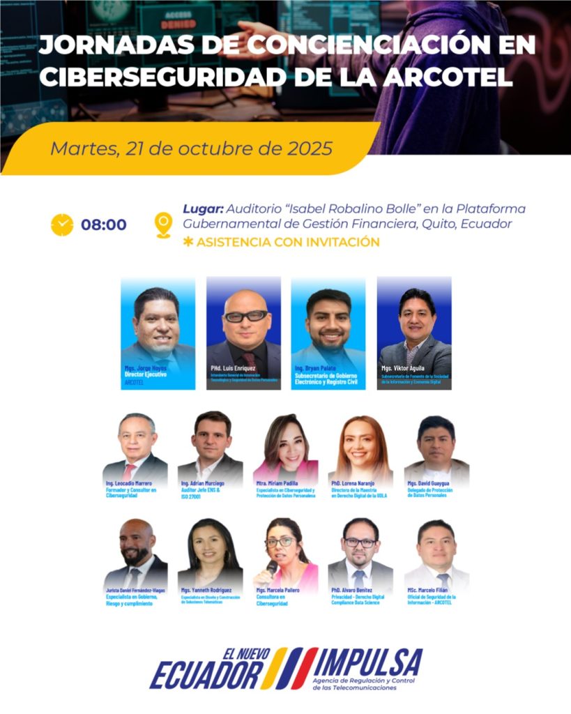 ARCOTEL reafirma su compromiso con el Nuevo Ecuador al capacitar a su talento humano, promoviendo que la seguridad digital sea una responsabilidad que se construye en conjunto. |