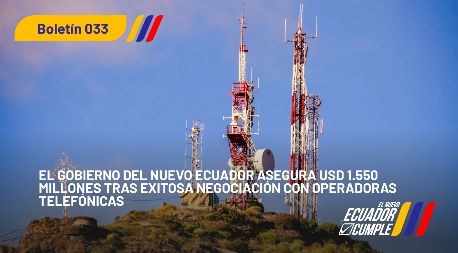 El Gobierno del Nuevo Ecuador asegura USD 1.550 millones tras exitosa negociación con operadoras telefónicas