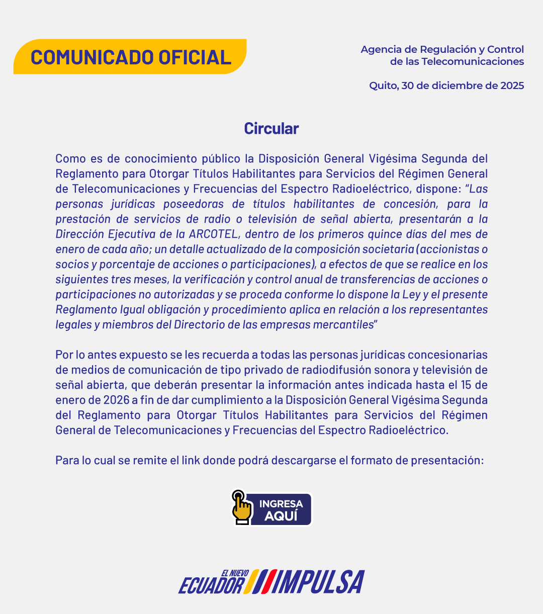 Esta visita se realizó porque el pasado 6 de abril de 2016, la Directora ejecutiva de la ARCOTEL, Ing. Ana Proaño, compareció ante la Comisión de Gobiernos Autónomos Descentralizados de Asamblea Nacional y explicó que las radiaciones que producen las antenas celulares tienen una emisión electromagnética muy baja y cumplen con la normativa establecida para el efecto.